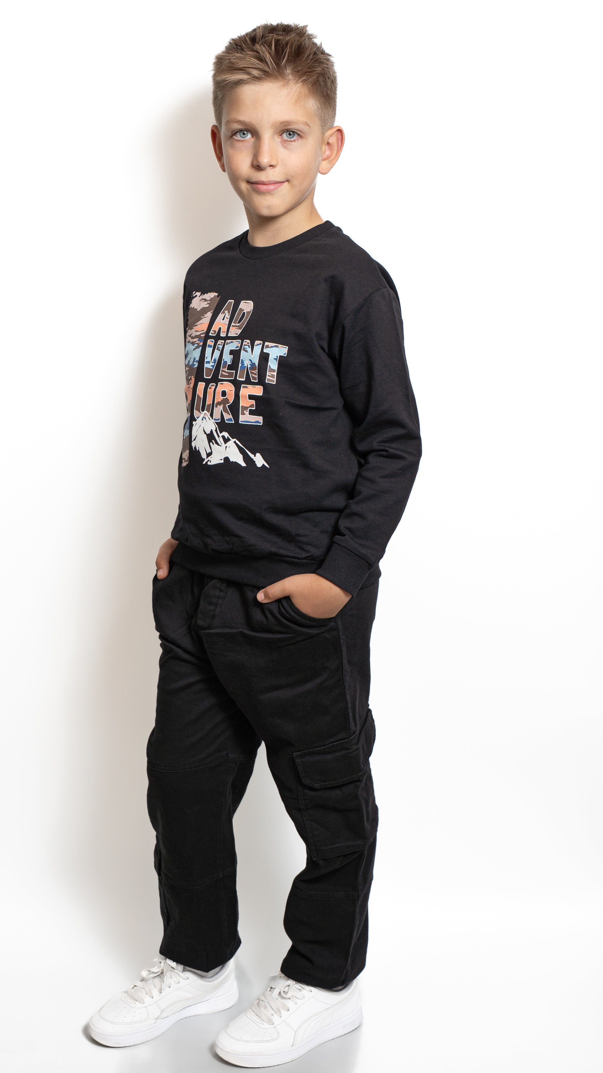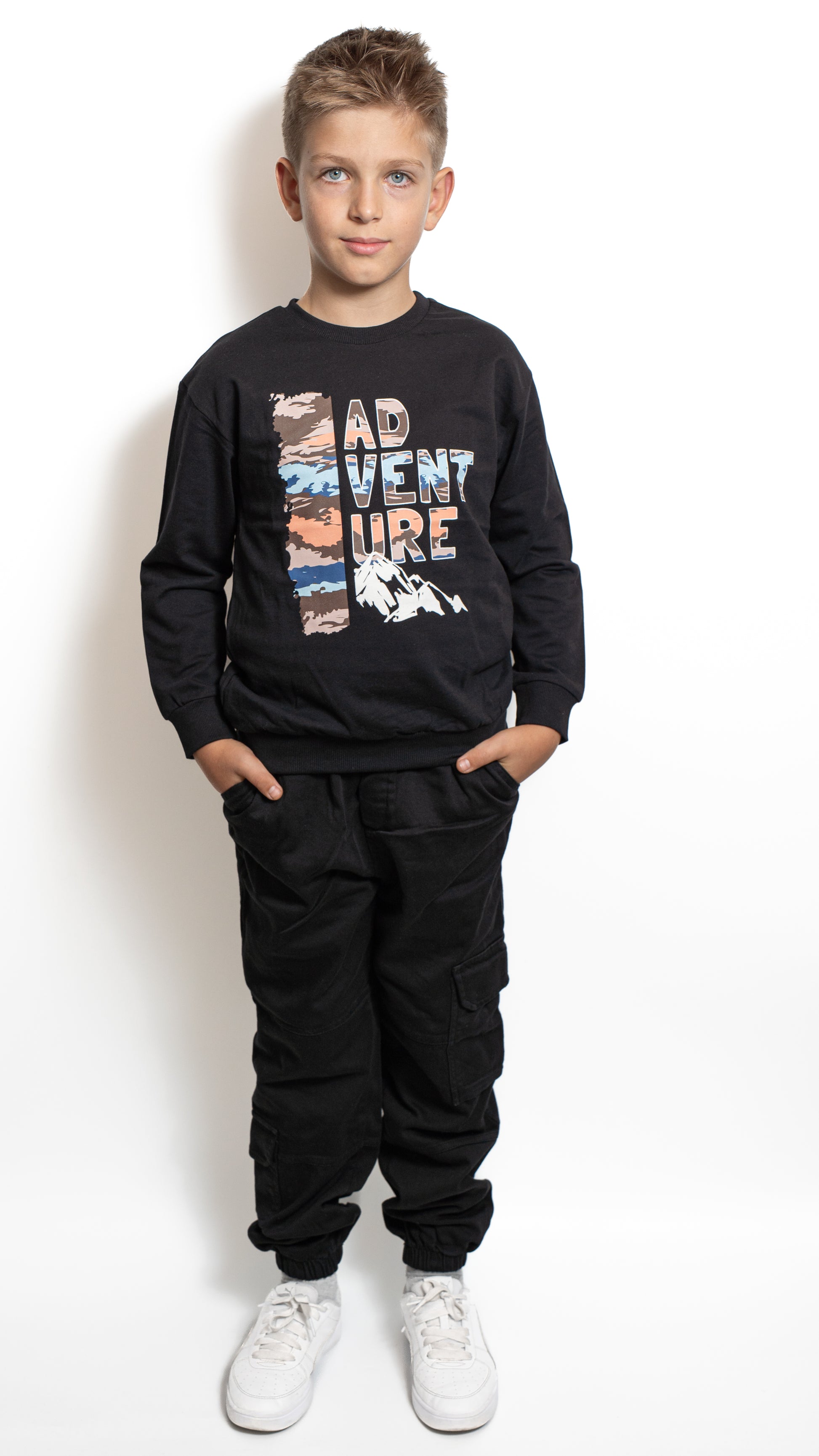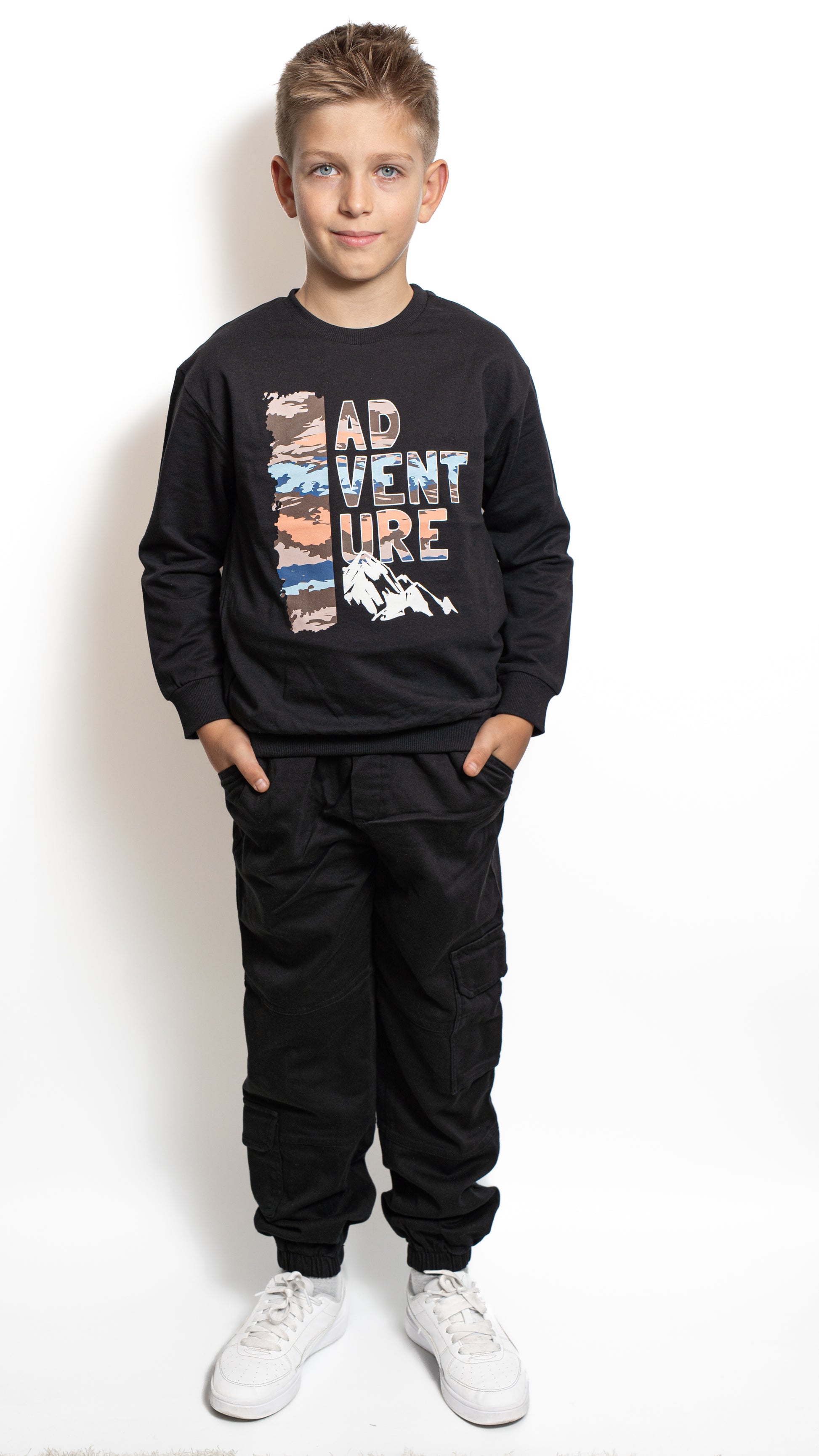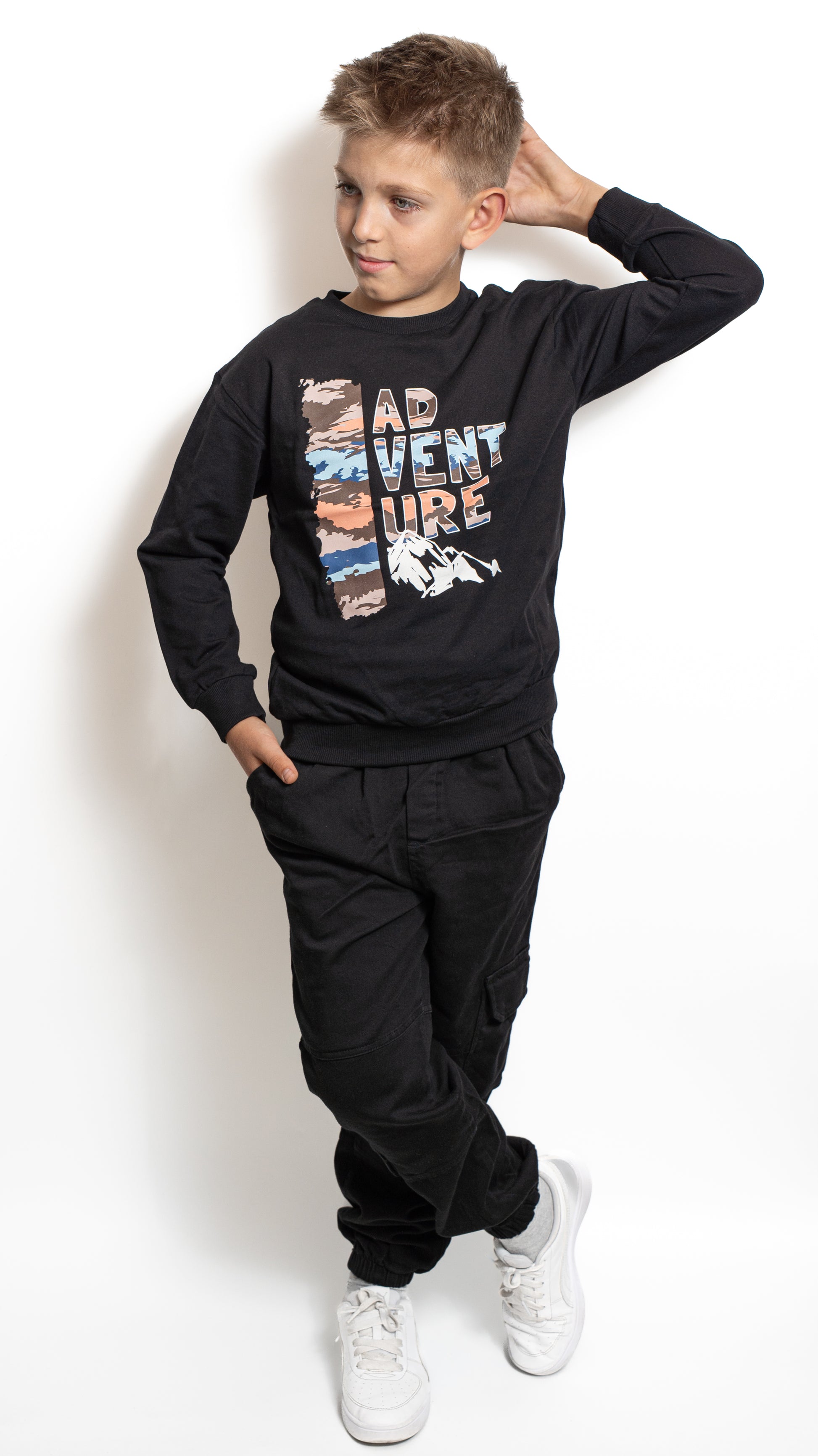 Această bluză pentru băieți este confecționată din bumbac moale, oferind o senzație plăcută la purtare și libertate de mișcare în orice moment al zilei. Imprimeul modern “ADVENTURE” cu accente colorate adaugă o notă de energie și spirit aventurier, perfectă pentru copiii activi. Croiala lejeră și manșetele elastice asigură un plus de confort și o potrivire excelentă. Ideală pentru școală, plimbări sau activități de weekend, bluza îmbină perfect stilul casual cu funcționalitatea.