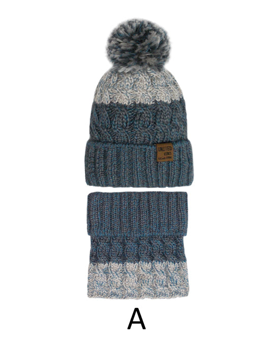 Design: Căciulă tricotată cu moț și fular circular asortat