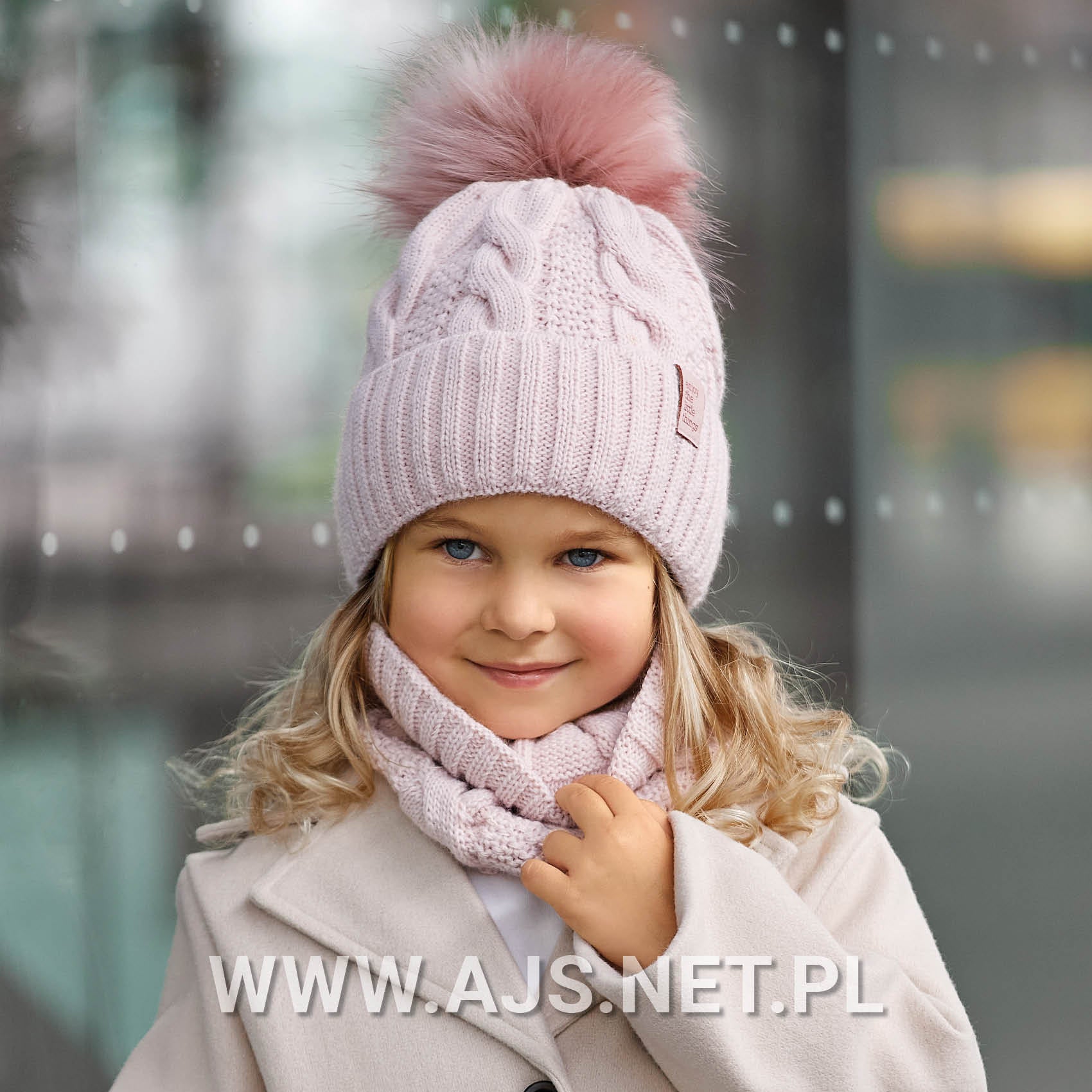 Căciula are un design modern, cu model împletit, completat de un moț pufos din blăniță artificială și o fundiță decorativă strălucitoare, pentru un plus de farmec. Fularul circular este moale, elastic și ușor de purtat, oferind protecție termică optimă în jurul gâtului.