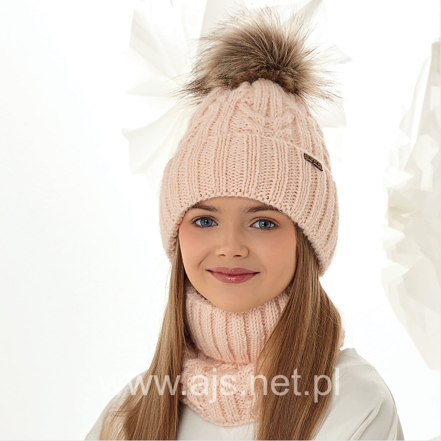 Design: Căciulă tricotată cu moț pufos și fular asortat