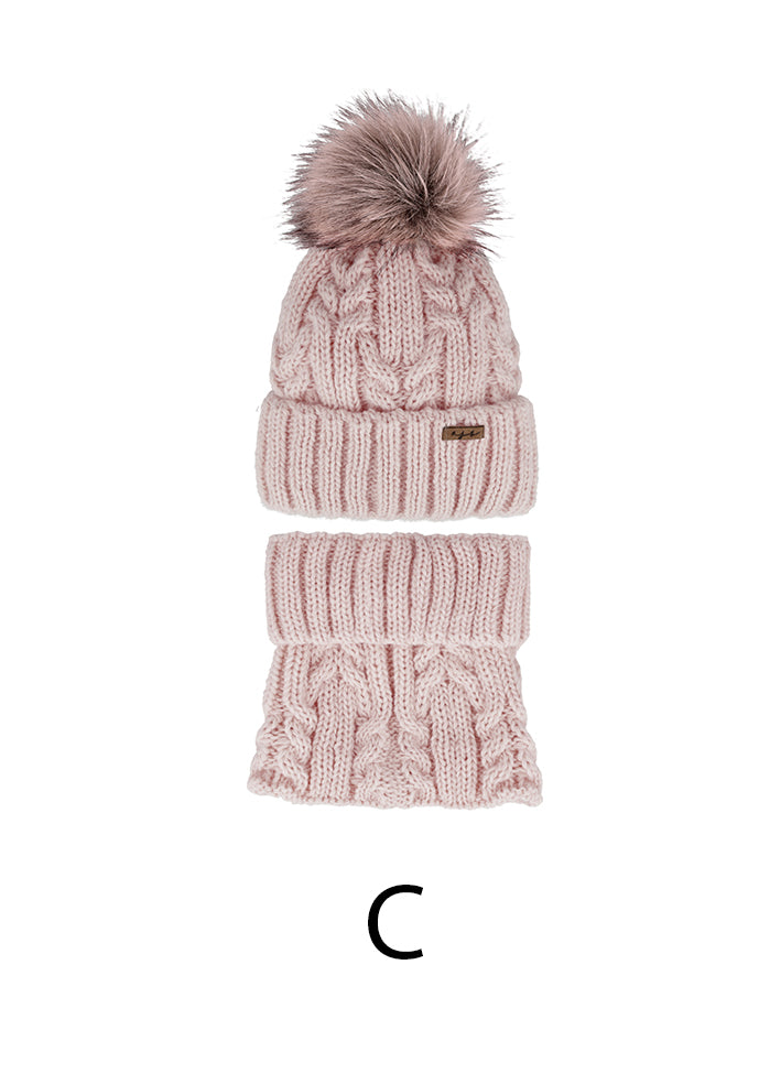Căciula are un design modern, cu model împletit, completat de un moț pufos din blăniță artificială și o fundiță decorativă strălucitoare, pentru un plus de farmec. Fularul circular este moale, elastic și ușor de purtat, oferind protecție termică optimă în jurul gâtului.