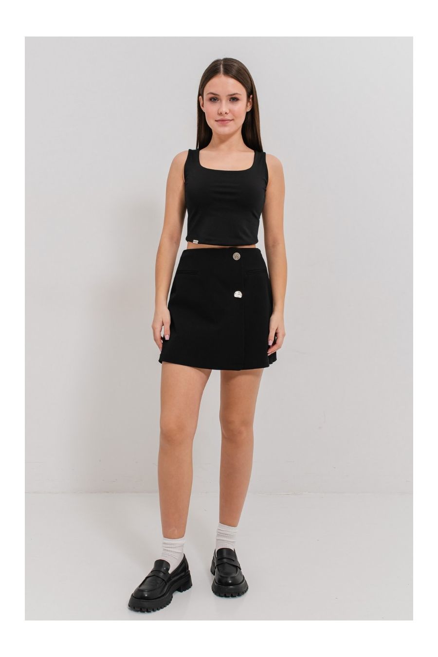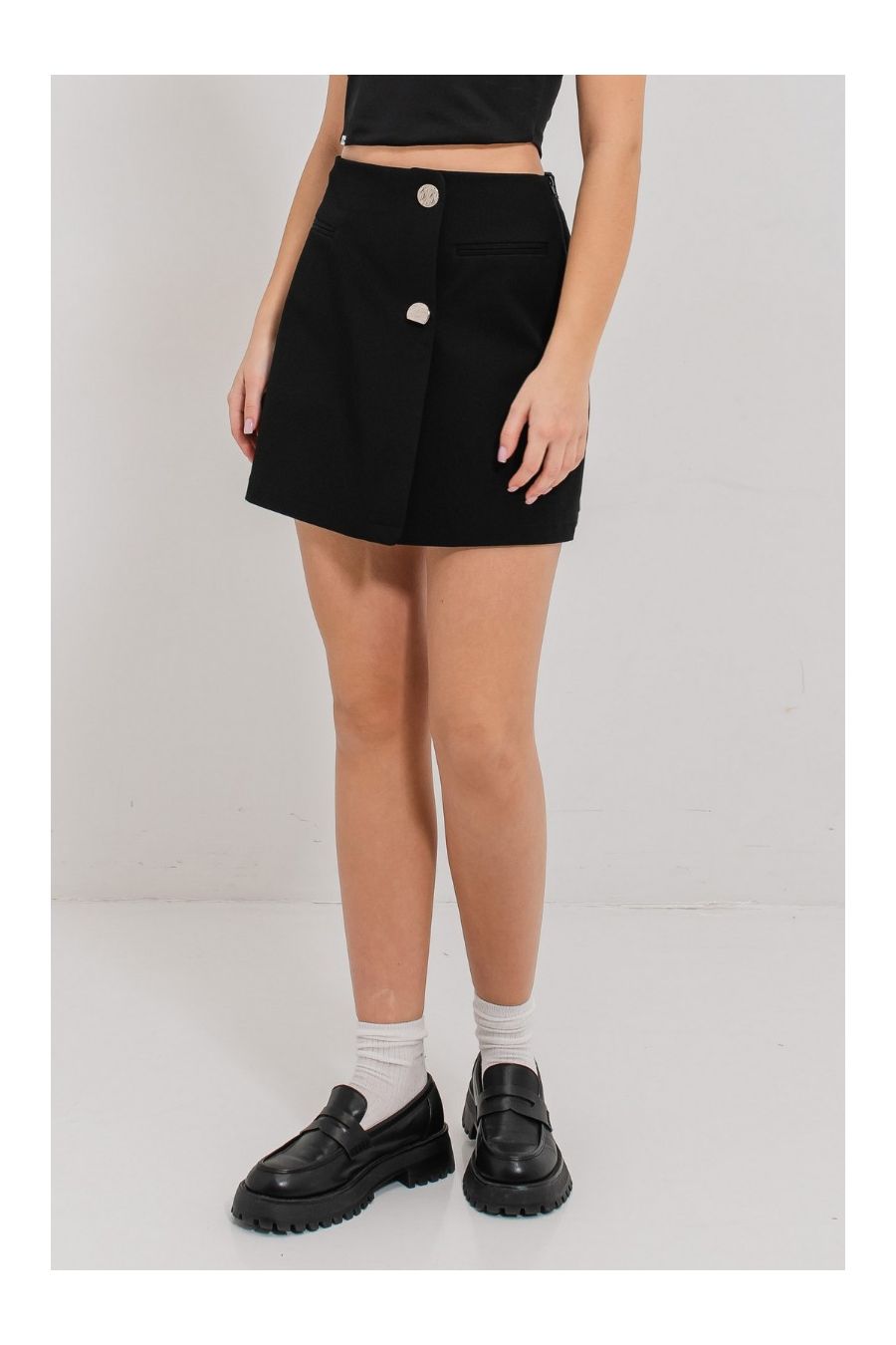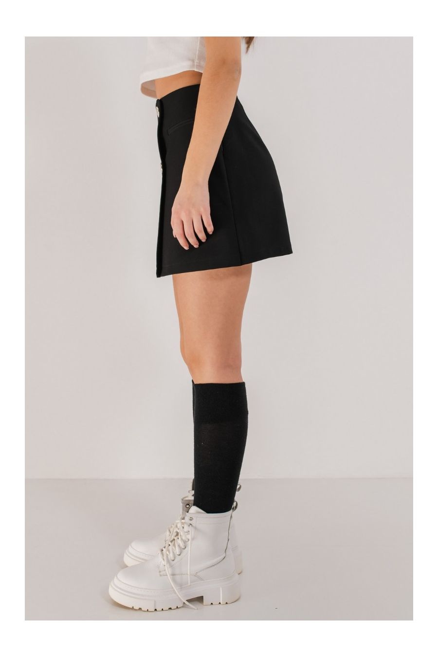 Realizată dintr-un material compact și plăcut la atingere, această fustă cu croială tip pantaloni scurți oferă un aspect stilat și totodată practic. Designul în formă petrecută este completat de o fundiță laterală decorativă, conferind un detaliu chic întregii ținute.