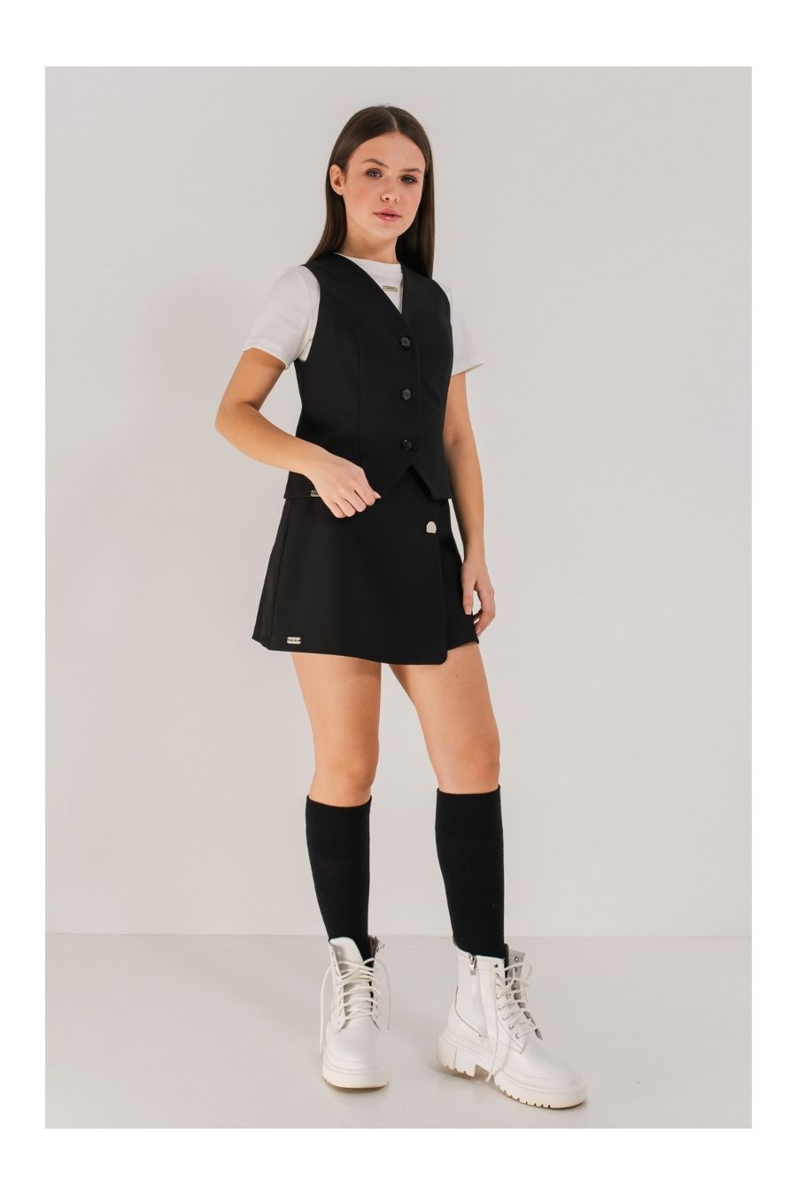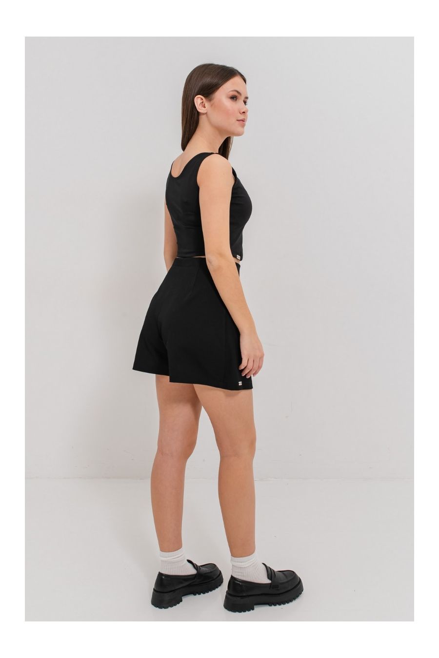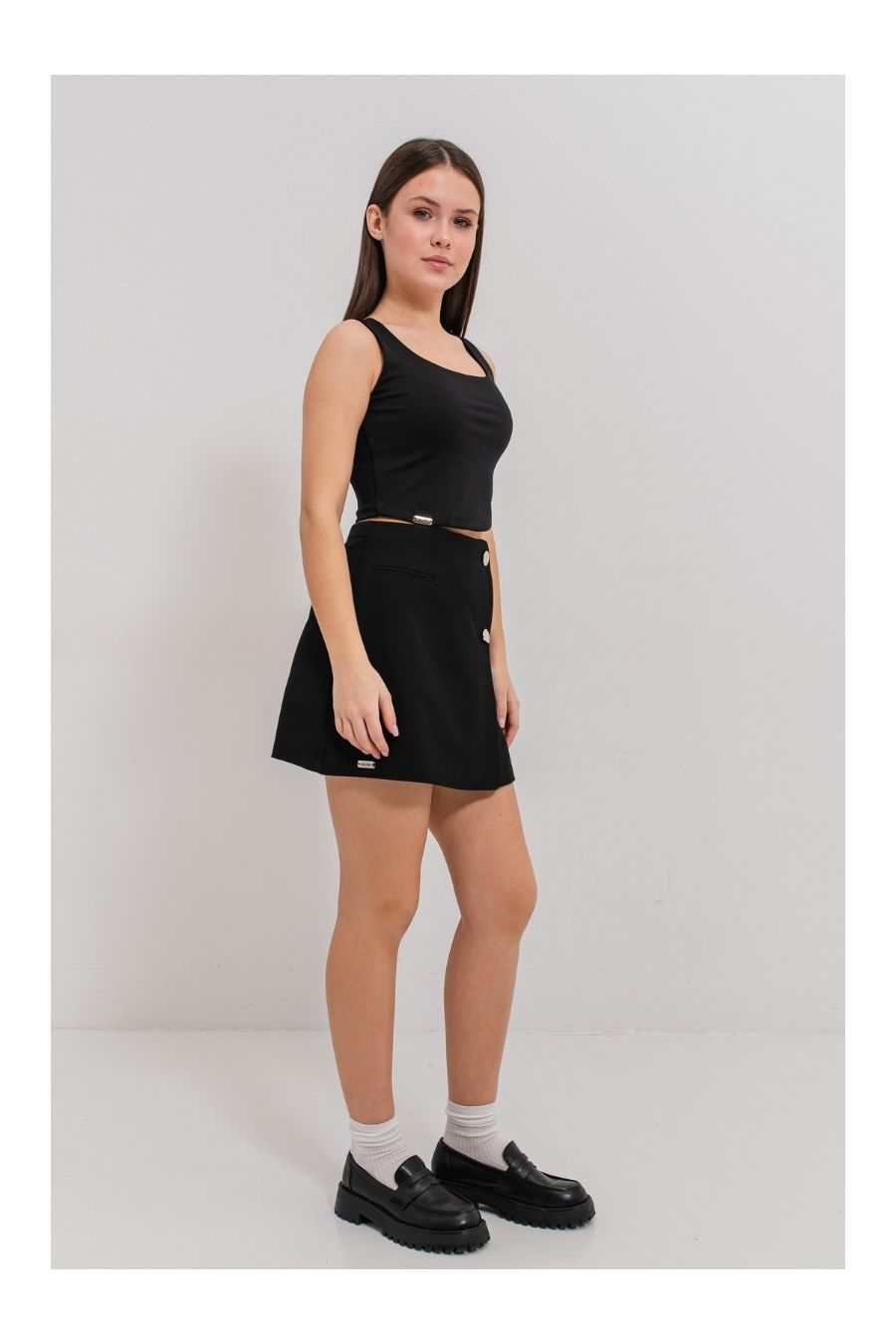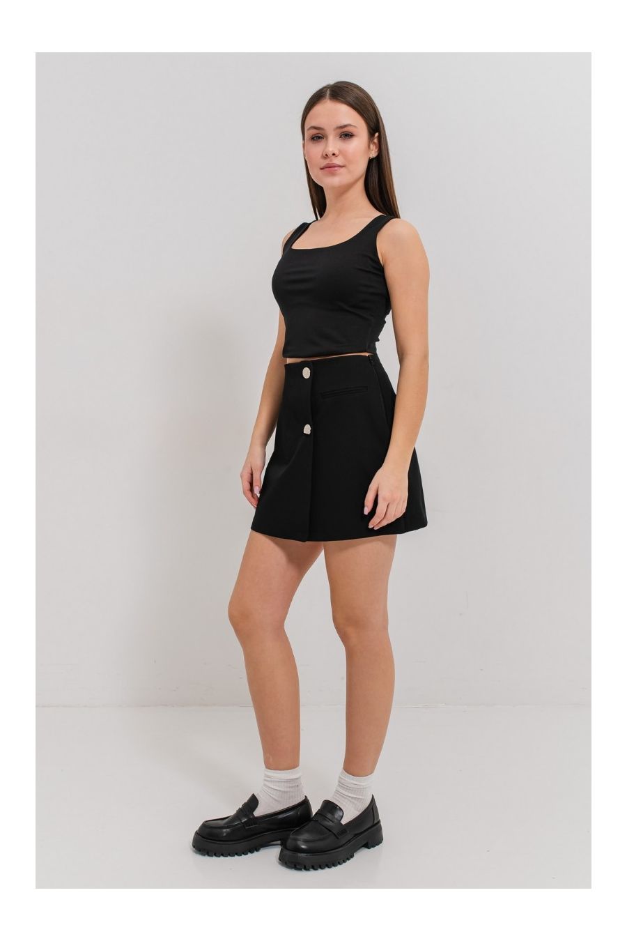 Realizată dintr-un material compact și plăcut la atingere, această fustă cu croială tip pantaloni scurți oferă un aspect stilat și totodată practic. Designul în formă petrecută este completat de o fundiță laterală decorativă, conferind un detaliu chic întregii ținute.