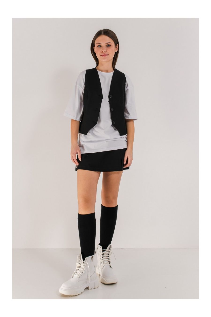 Modernă, versatilă și extrem de confortabilă — fusta-pantalon NAMIRI în negru clasic este piesa must-have pentru adolescentele care iubesc combinațiile de stil și funcționalitate. Deși la prima vedere pare o fustă mini sofisticată, în spatele croielii se ascunde un pantalon scurt practic, perfect pentru un stil de viață activ.