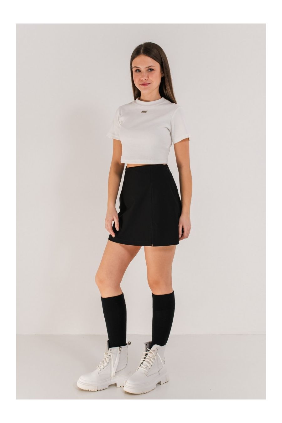 Detaliul cu șliț frontal subtil adaugă o notă edgy, în timp ce talia elastică asigură o potrivire impecabilă și confort pe tot parcursul zilei.