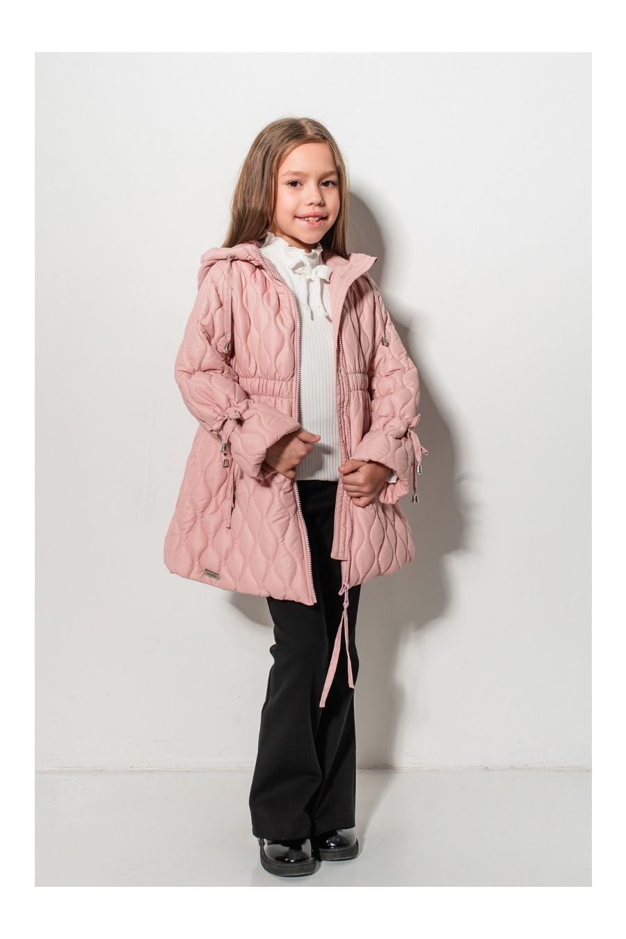 Această geacă intermediară pentru fetițe este alegerea perfectă pentru sezonul de tranziție, combinând un design feminin cu protecție eficientă împotriva vântului și a frigului ușor. Modelul „Felicity” se distinge prin croiala sa elegantă în formă de A, cusăturile matlasate în formă de romb alungit și fundițele delicate de la mâneci, care adaugă un aer rafinat și jucăuș.