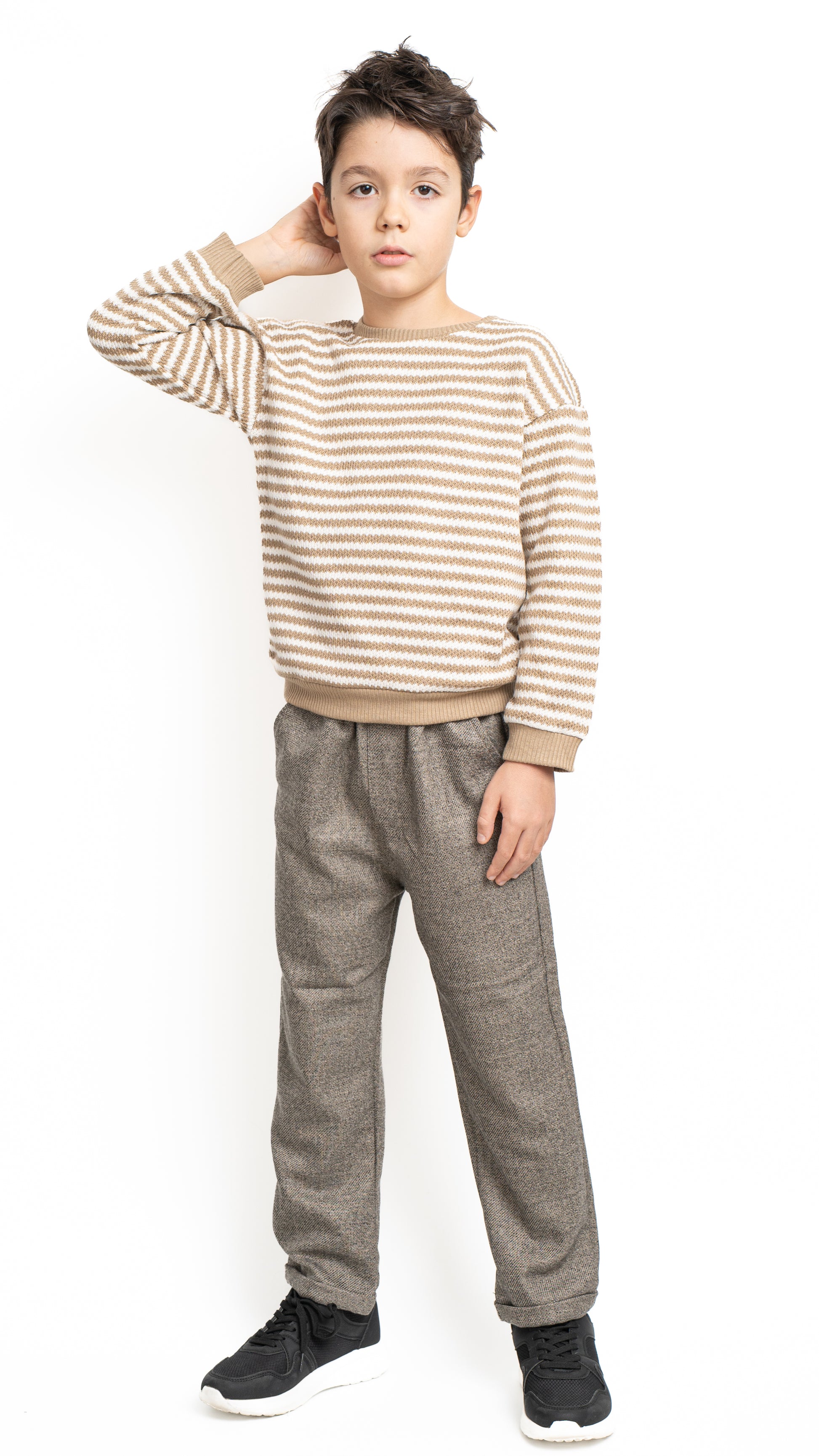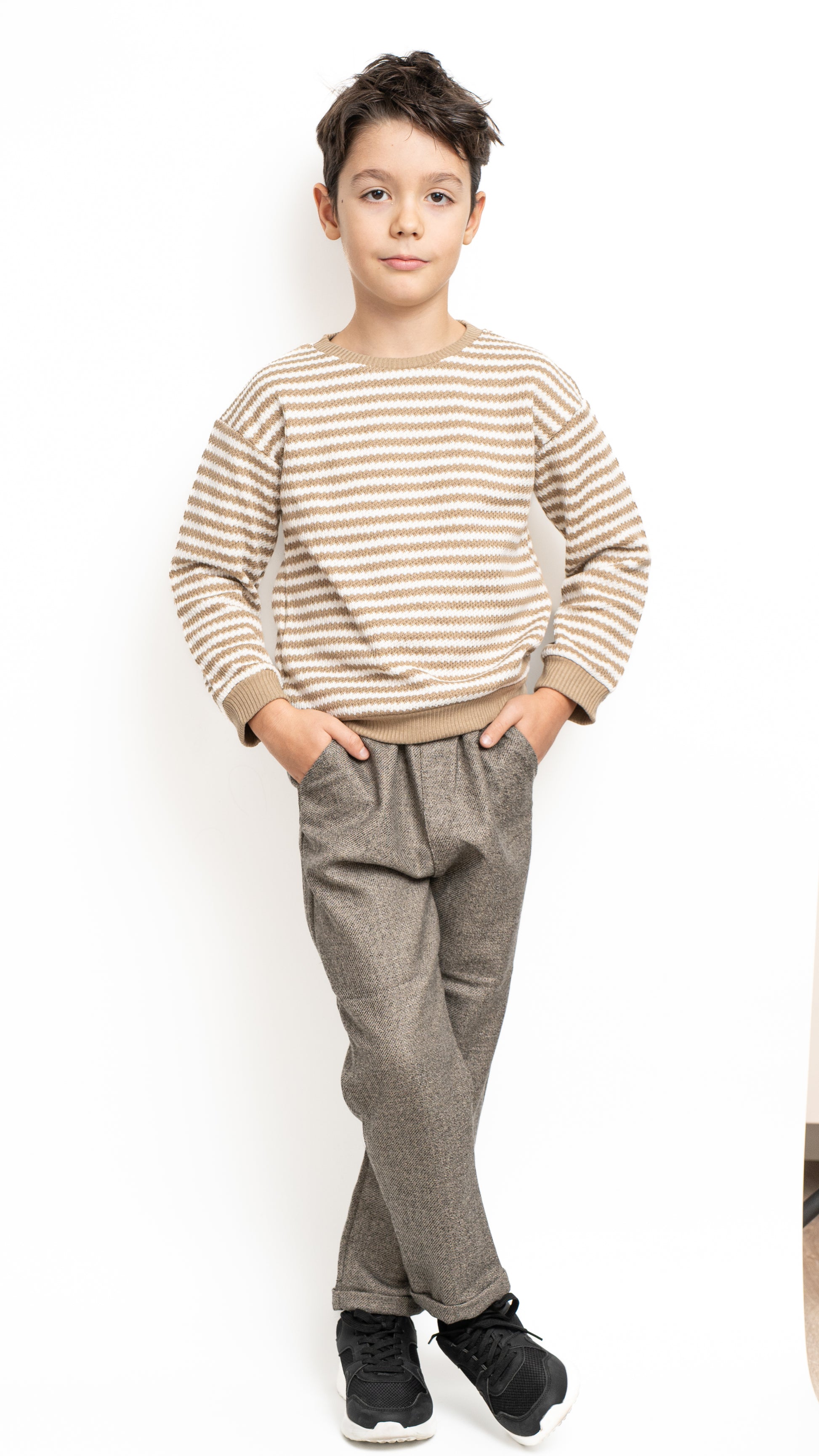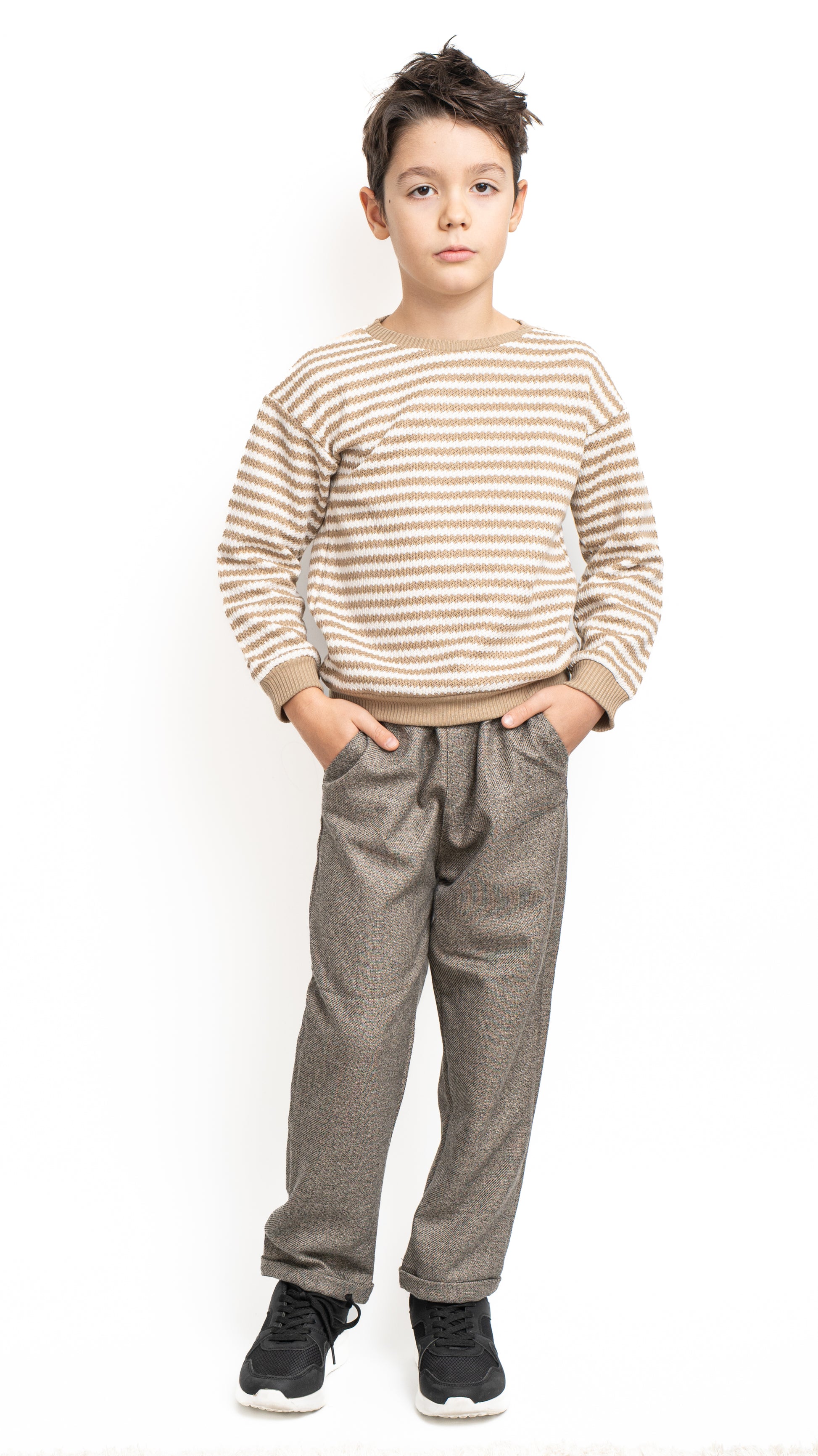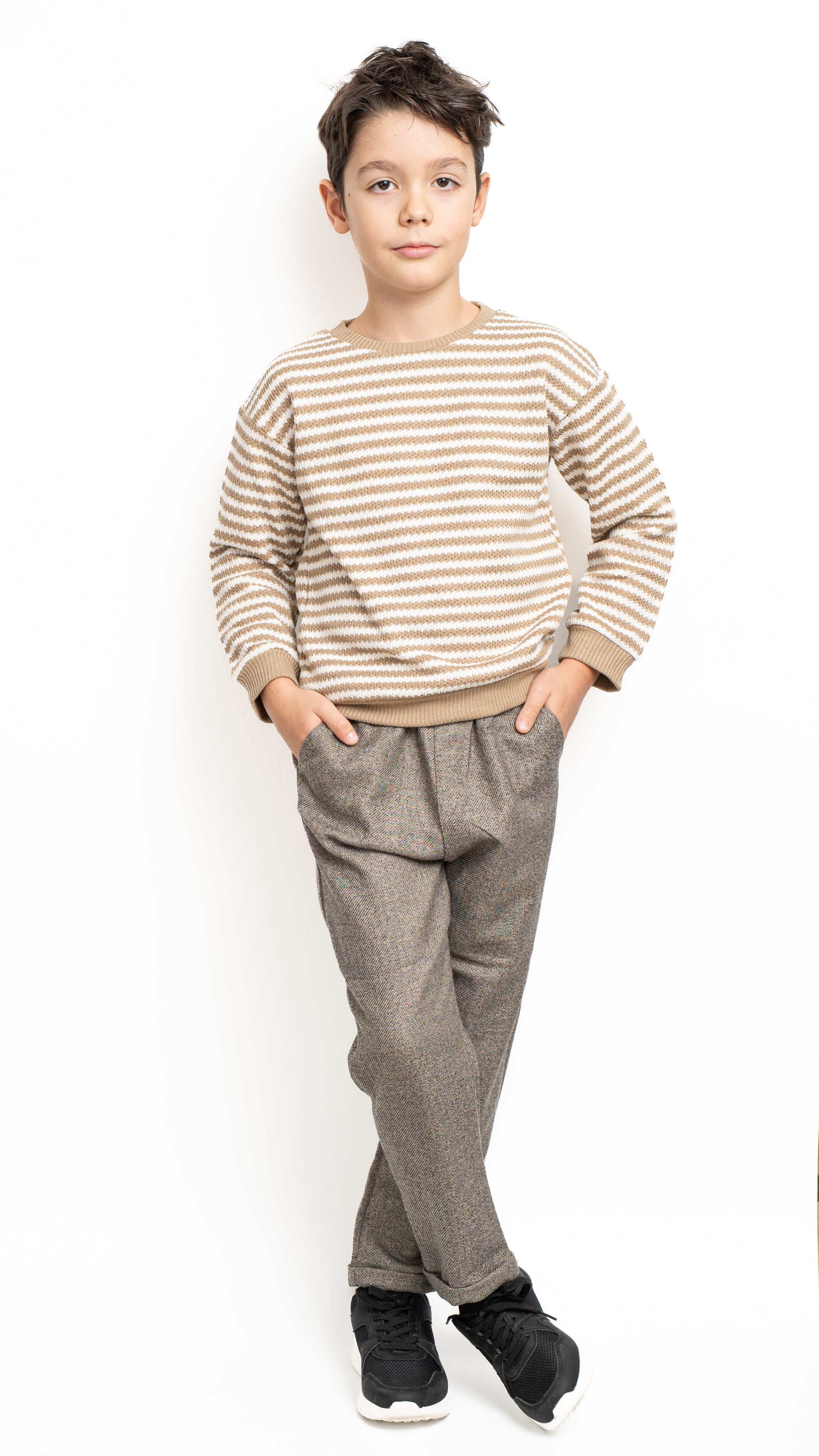 Bluza Leo este o alegere ideală pentru zilele răcoroase, oferind un echilibru perfect între confort și stil casual. Confecționată dintr-un material moale și plăcut la atingere, asigură libertate de mișcare și o senzație plăcută pe piele. Modelul în dungi bej și alb aduce un aer clasic, ușor retro, perfect pentru un look modern și relaxat.
