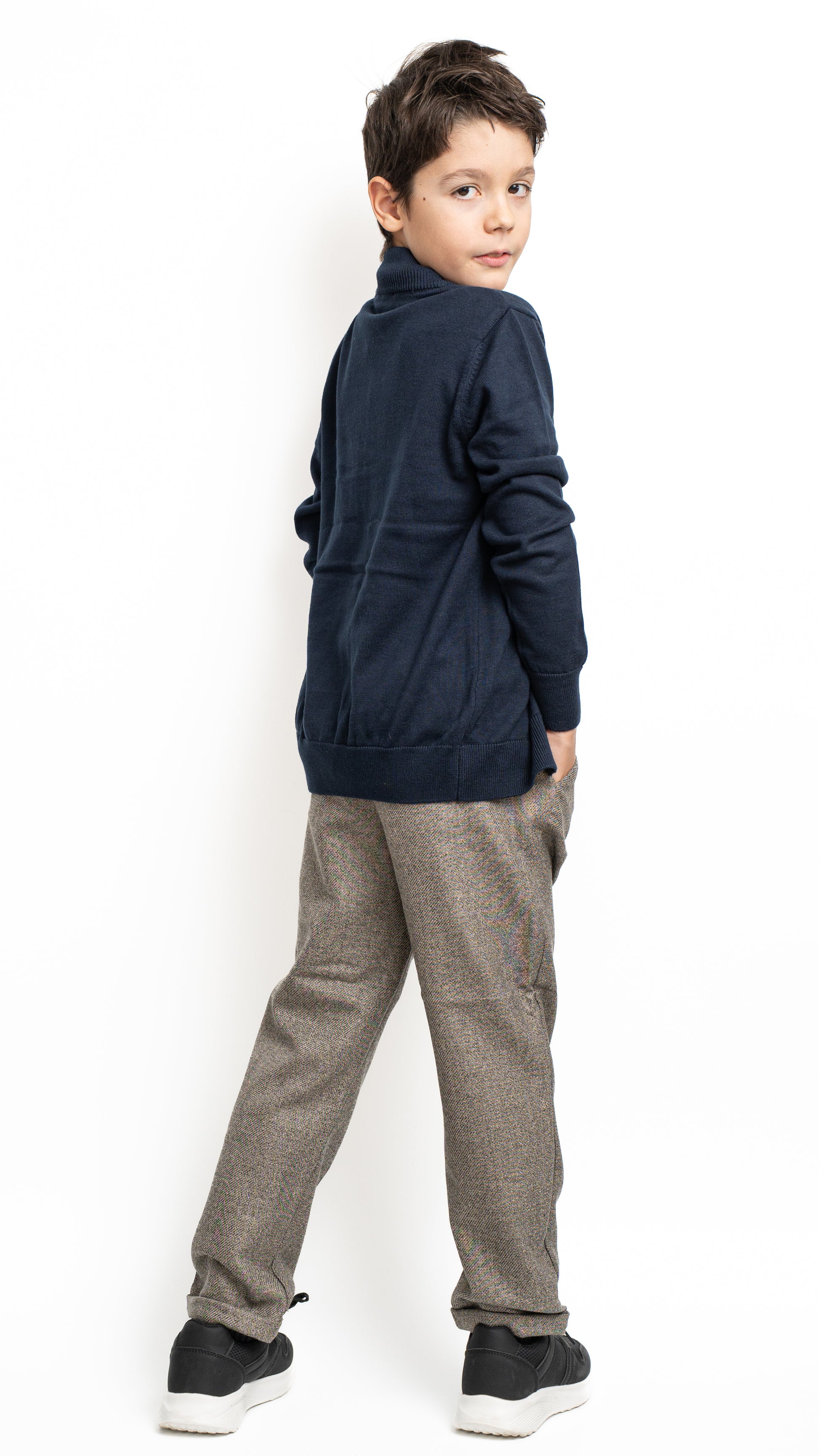 Puloverul Navy Zip oferă un aspect curat și elegant, fiind o piesă esențială în garderoba oricărui băiat activ și stilat.