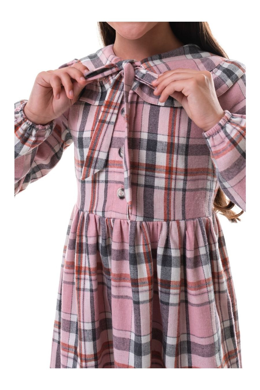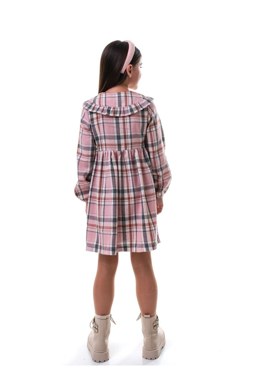 Această rochiță elegantă este confecționată din bumbac moale, oferind un confort deosebit și un aspect rafinat. Gulerul clasic adaugă un element de eleganță, făcând-o ideală pentru evenimente speciale sau pentru o ținută deosebită de zi. Rochița are o croială simplă și delicată, cu o căptușeală ușoară pentru un plus de confort. Închiderea discretă cu nasturi la spate permite o îmbrăcare rapidă și comodă.