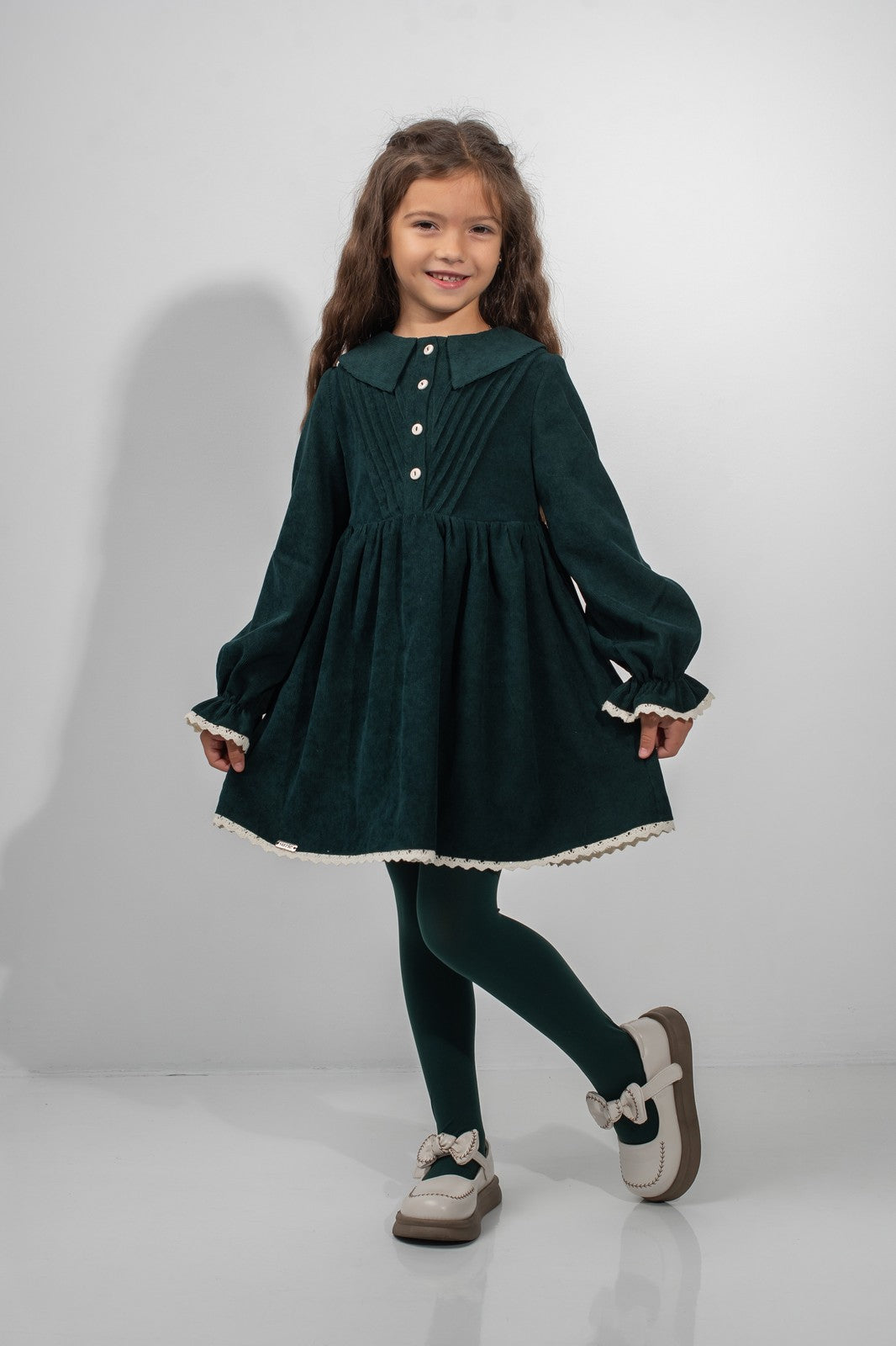 Rochia „Linea” este alegerea ideală pentru evenimente speciale, dar și pentru zile în care rafinamentul și eleganța trebuie să fie în centrul atenției. Cu o croială lejeră în stil A-line și detalii atent lucrate, această rochie este perfectă pentru fetițele care adoră ținutele cu aer vintage și sofisticat.