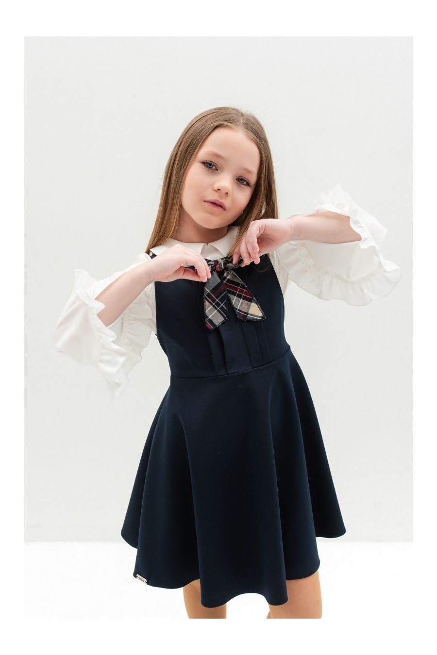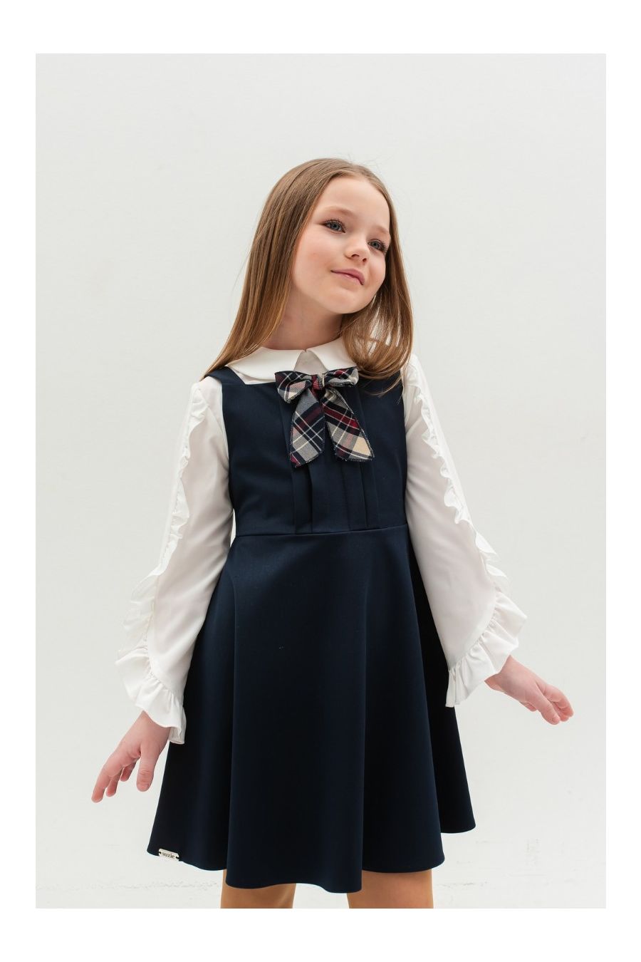 Această uniformă tip sarafan pentru fetițe este confecționată dintr-un amestec de bumbac și poliester, oferind atât confort, cât și rezistență pentru utilizarea zilnică. Designul clasic și elegant include bretele late și o fustă plisată, fiind ideal pentru școală. Materialul respirabil și ușor de întreținut face această uniformă perfectă pentru activitățile zilnice, iar închiderea cu fermoar lateral asigură o îmbrăcare rapidă și ușoară. Poate fi asortată cu o cămașă sau o bluză pentru un aspect complet și ordonat.