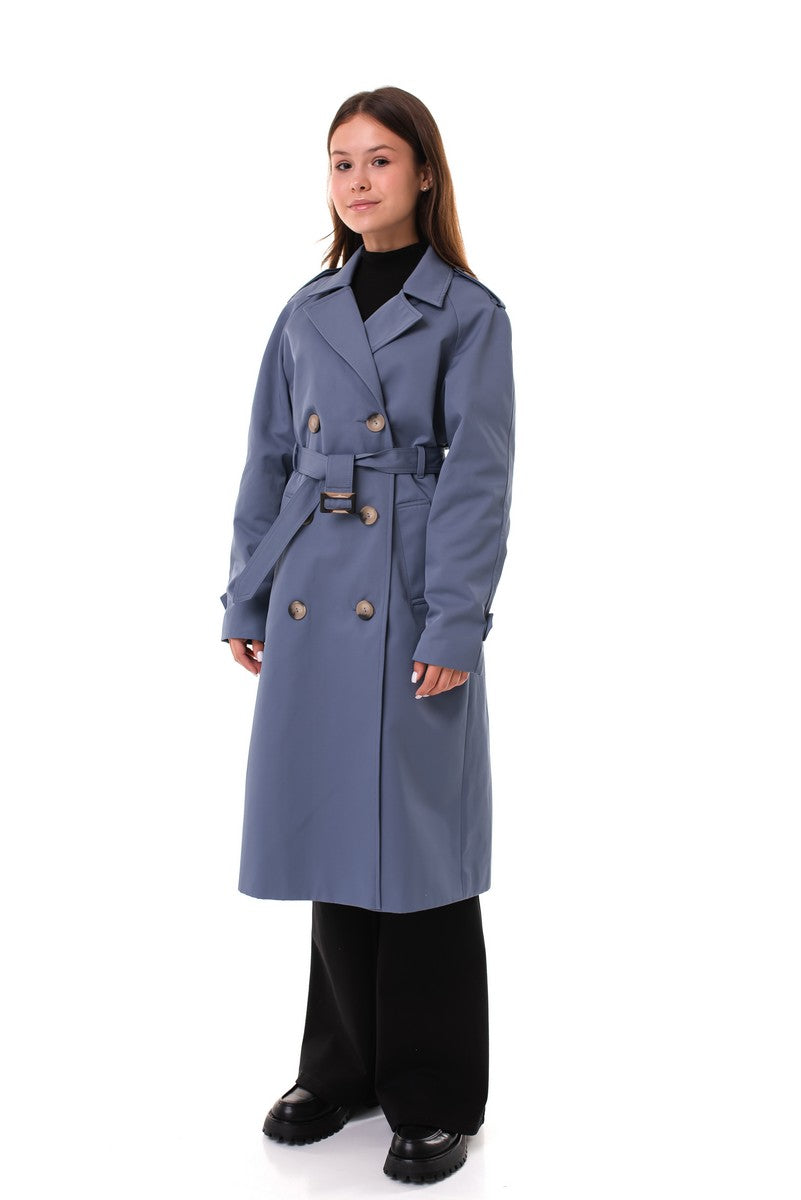 Designul său atemporal este evidențiat de închiderea dublă cu nasturi, gulerul tip rever și buzunarele generoase, iar materialul ușor și plăcut la atingere asigură confort pe tot parcursul zilei. Poate fi purtat atât peste o ținută casual, cât și ca parte a unui outfit elegant de toamnă.